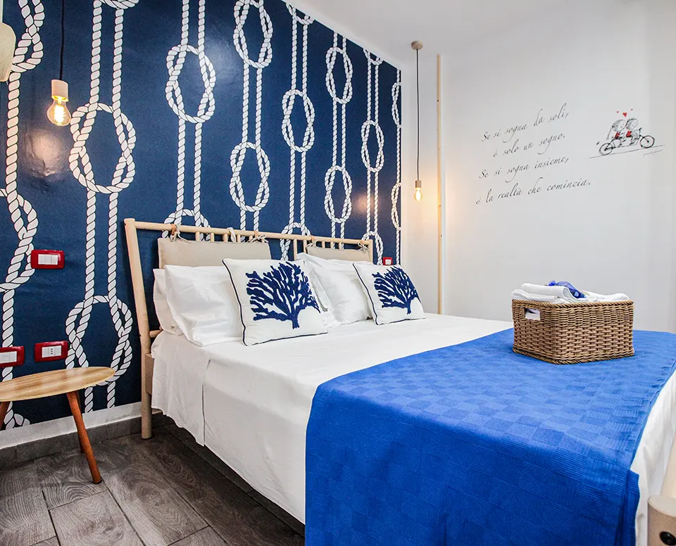 La Camera Matrimoniale offre un ambiente accogliente e dal design essenziale, molto apprezzata dai nostri ospiti grazie alla sua ampia finestra con vista sul mare.
