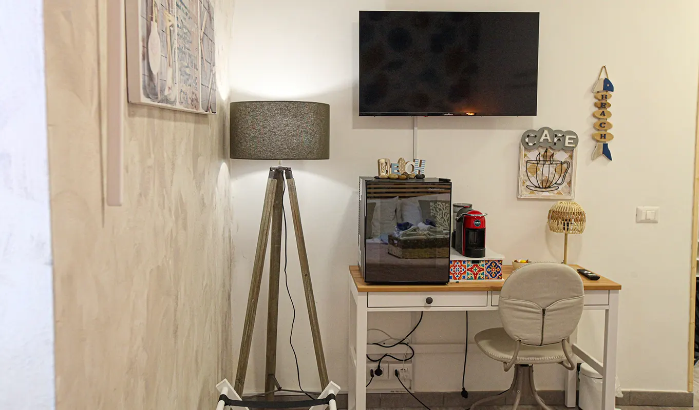 "Ischia" è ideale per coppie in cerca di romanticismo, amici in vacanza o ospiti business che desiderano un ambiente sobrio ma confortevole. La luce naturale che entra dalla finestra e la brezza marina che si percepisce rendono il soggiorno un’esperienza piacevole e rigenerante.