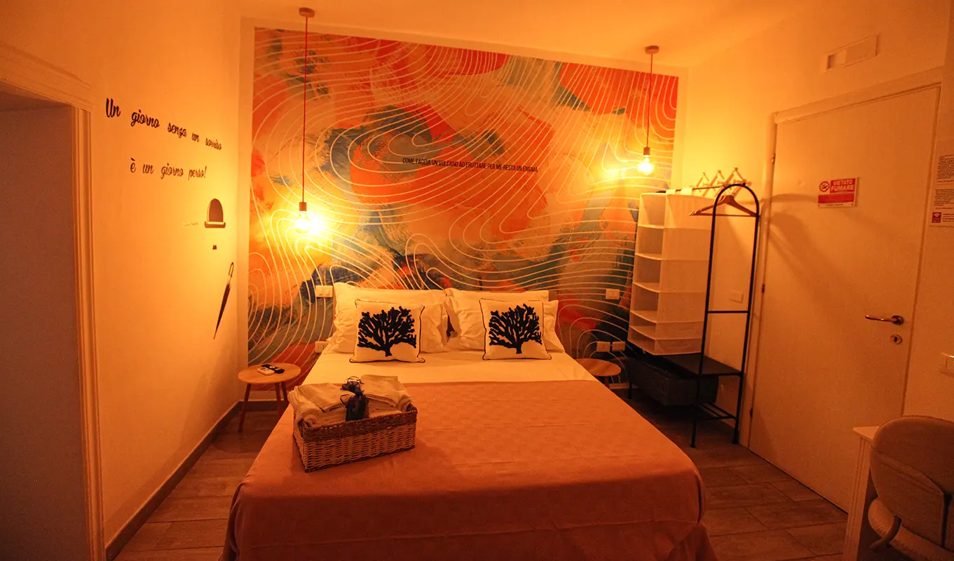 La camera "Vesuvio" è un invito al relax, pensata per chi desidera un soggiorno all’insegna della tranquillità e del benessere. Situata nella parte interna della struttura, lontano dai rumori della strada e dal trambusto cittadino, questa stanza doppia è il rifugio perfetto per coppie, amici o viaggiatori solitari in cerca di quiete.
